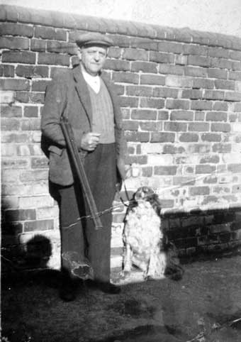 John Croft with shot gun and Peggy the dog, going rabbitting.