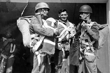 Three soldiers with parachute equipment