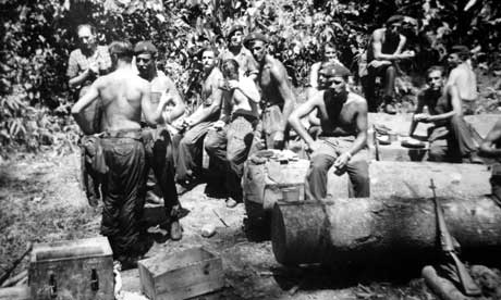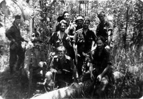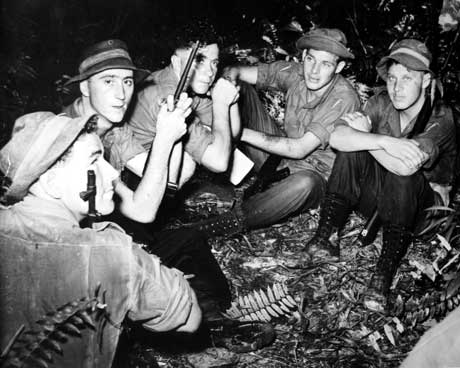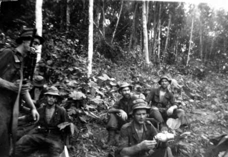 Jungle warfare training resting soldiers