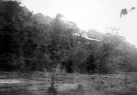 Helicopter in jungle.