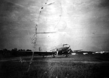 Paratrooper at airfield, ready to board an aircraft.
