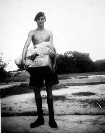 Soldier sat on bed in barracks