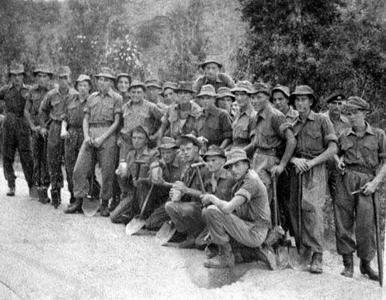 Group of soldiers, some with shovels.