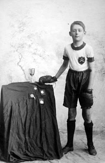 James Arthur Worsley, at the age of 12 years old, with boxing medals.