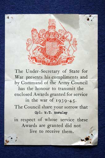 Collection of Lance corporal Clifford William Worsley, number 3707245,
