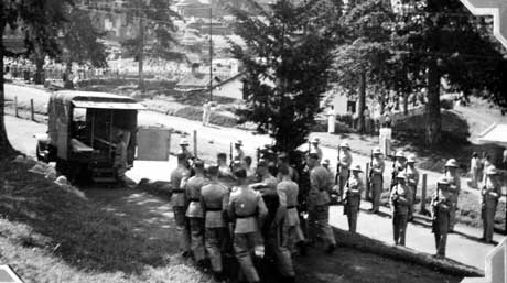 King’s Own Royal Regiment. Drowned 21 Sep 1936. Lowering the coffin.
