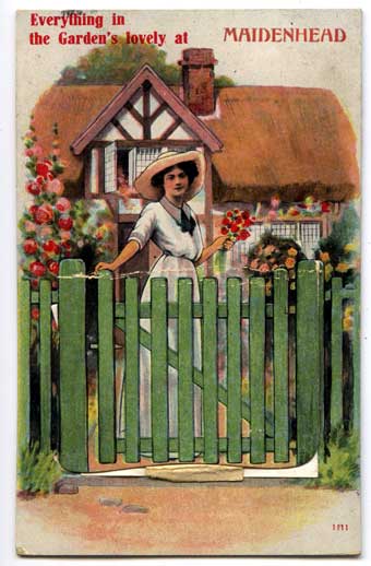 Postcard ‘Everything in the Garden’s Lovely at Maidenhead’. Addressed to