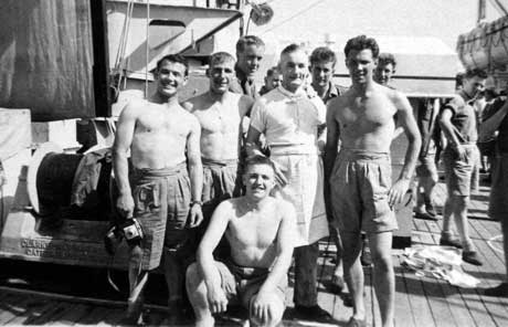 Group of galley staff on board HMT Empire Fowey on the way to Kenya.
