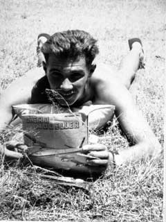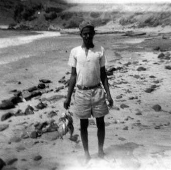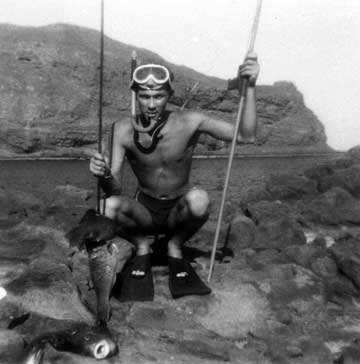 Private Charles Smith, spear fishing, Shark Island, Aden.