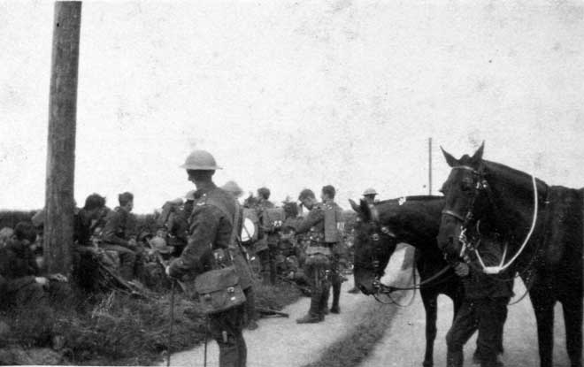 'A' Company returning from Soldiers and horses resting on road, Ireland,