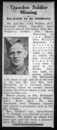 Trawden Soldier Missing. Mr and Mrs John Walker, of 7 Lambert Street,