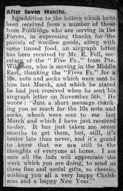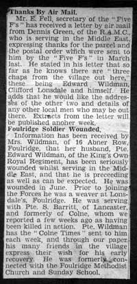 Thanks by Air Mail and Foulridge Soldier Wounded