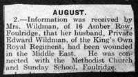 Foulridge, that her husband, Private Edward Wildman, of the King’s Own