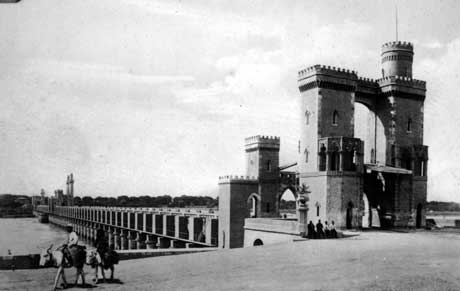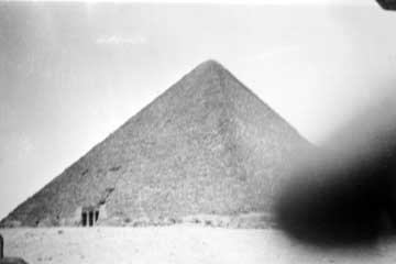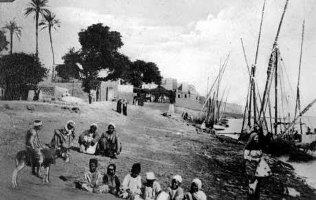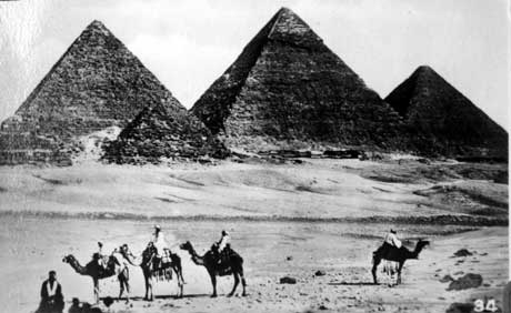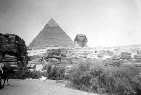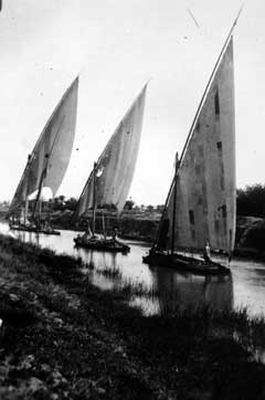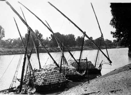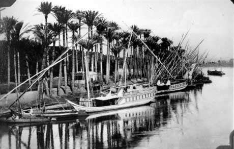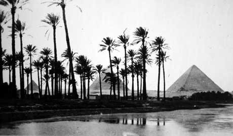 Palm Trees, and the Giza Pyramids from the River Nile, Egypt