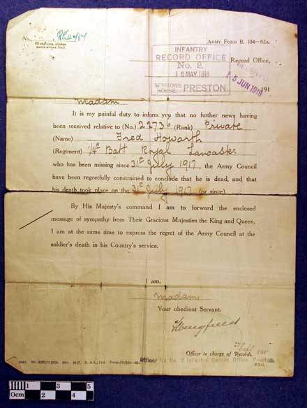Mrs Howarth, concerning Private Fred Howarth, number 22736, of the