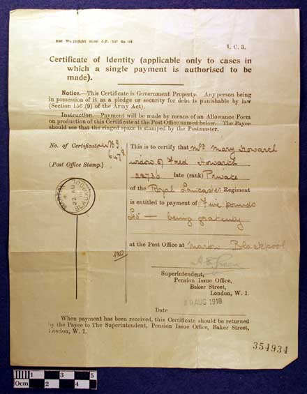 number 22736, 1st/4th King’s Own Royal Lancaster Regiment. For use at