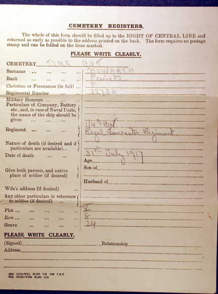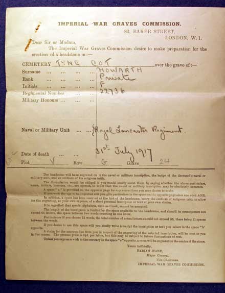 *Mary Howarth was the widow of Private Fred Howarth. Her maiden name was