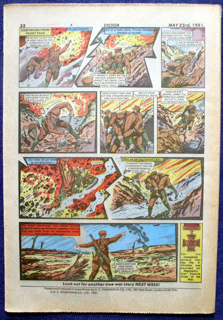 Collections - Comics Victor Comic - 23rd May 1981 The story of Private Harry Christian VC of the 2nd Battalion, King's Own, 1915