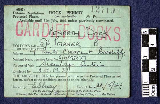 Dock Permit issued under the Defence Regulations, Protected Places. For