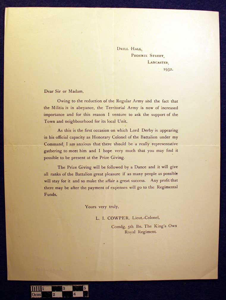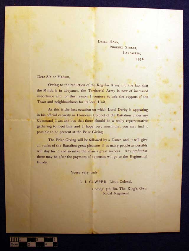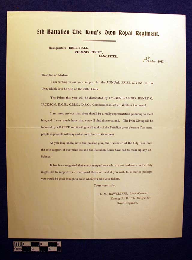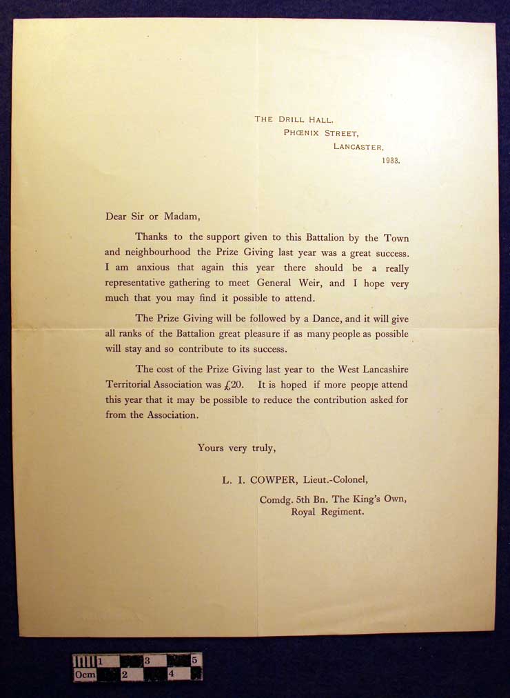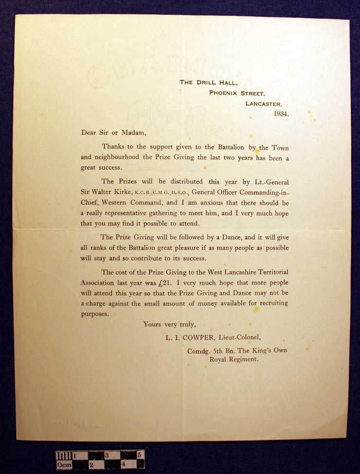 Collections - Archives 5th Battalion, King's Own Royal Regiment 1919-1939 Prize Giving