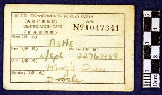 British Commonwealth Forces in Korea identity card of Lance Corporal