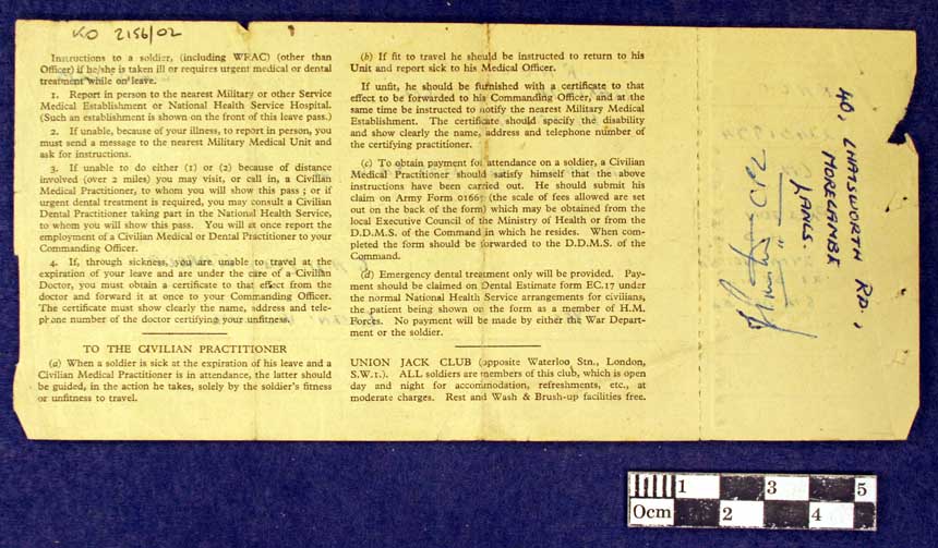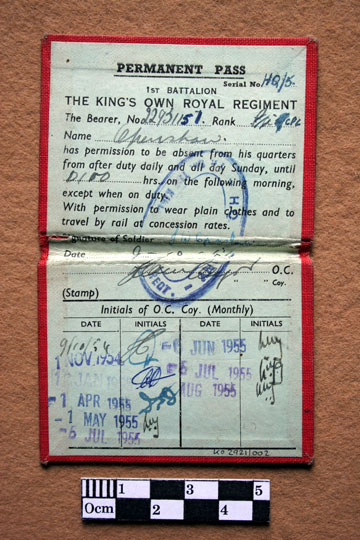 Permanent Pass, issued to Private J Openshaw, 1st King's Own Royal
