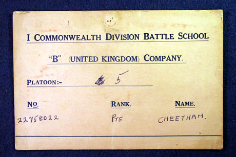 I Commonwealth Division Battle School 'B' (United Kingdom) Company card