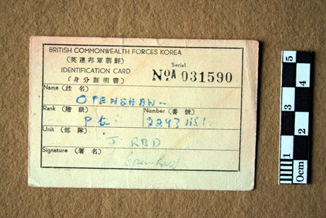 British Commonwealth Forces in Korea identity card for Private J Openshaw,
