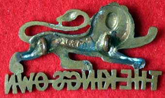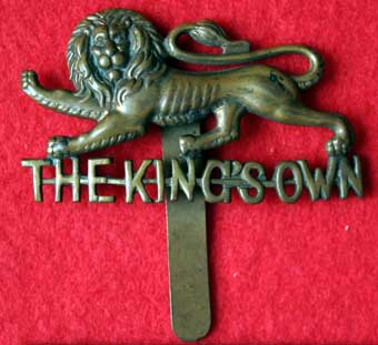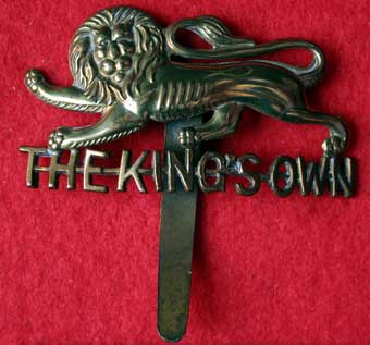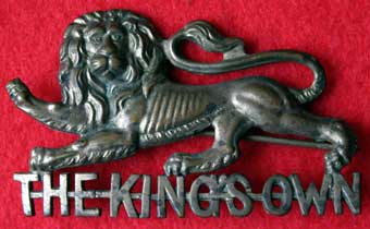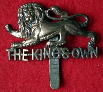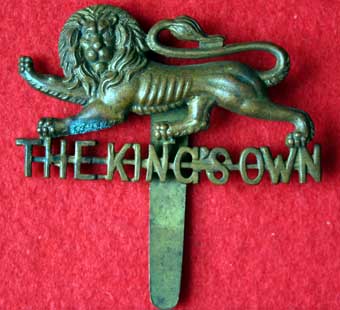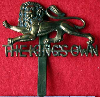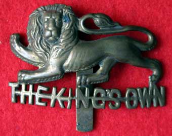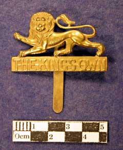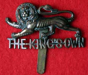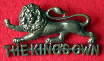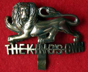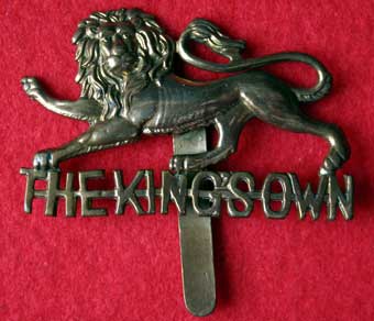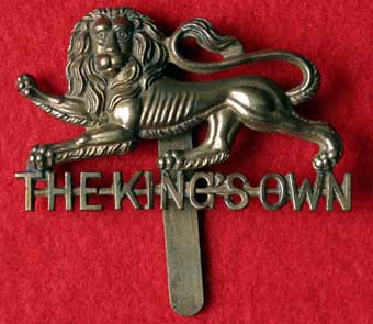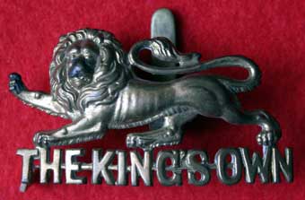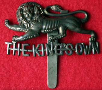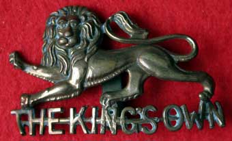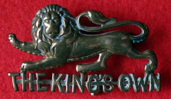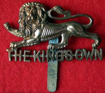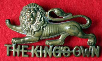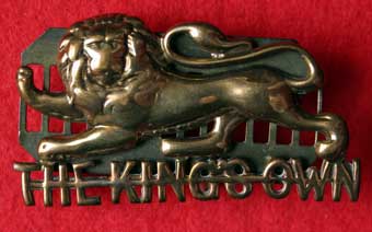 Cap badge of Sergeant C Kelly, King's Own in both the
