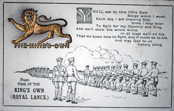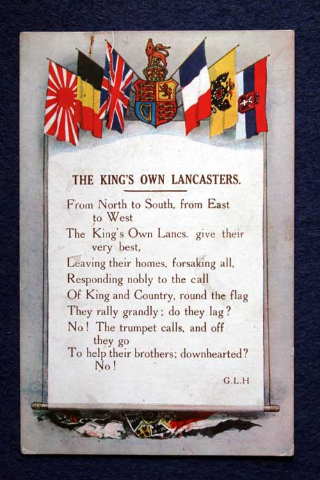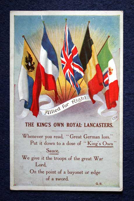 Postcard, 'The King's Own (Royal Lancaster Regiment) "The Lions".