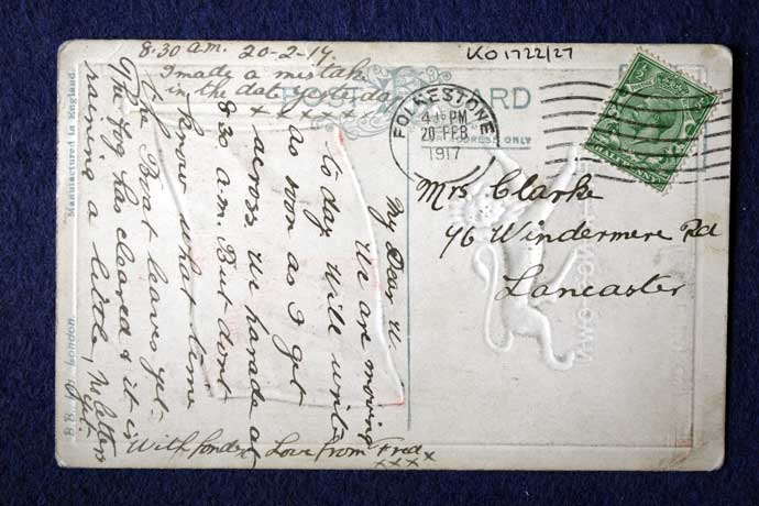 Posted from Fred to Mrs Clark, dated 20th February 1917.