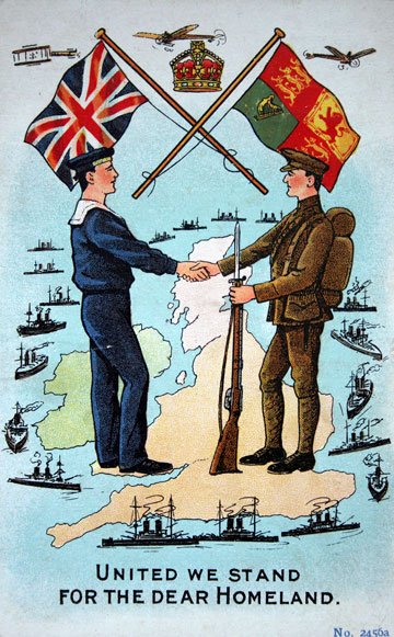 Patriotic postcard ‘United we stand for the dear homeland’ with message