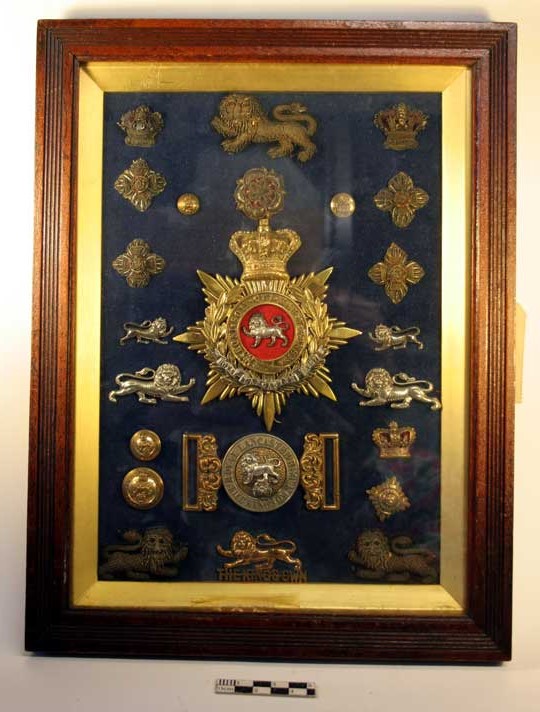 Frame of Badges etc, 3rd and 4th Militia Battalion, King’s Own Royal