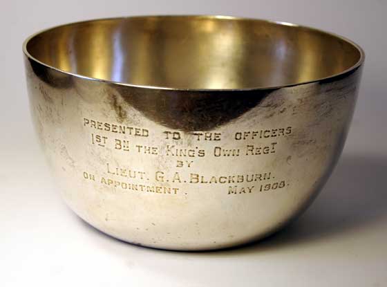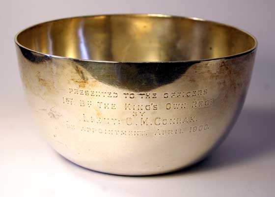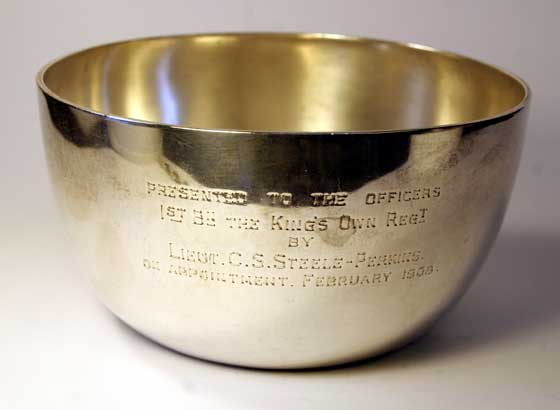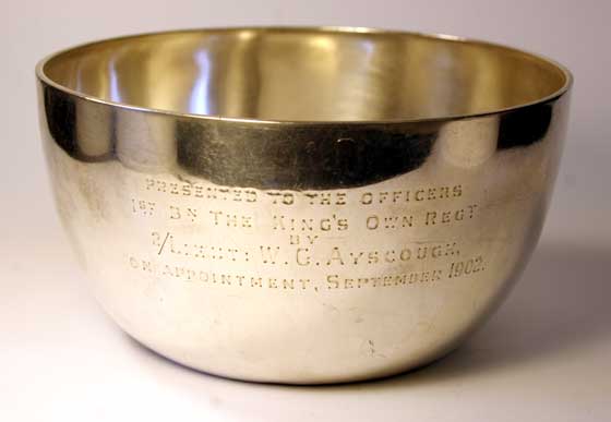 Small silver water bowl presented to the Officers, 1st Battalion, King’s