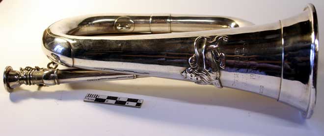 Silver bugle presented to the Dalton Company, North Lonsdale Rifles by