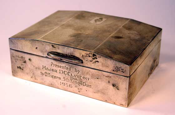 Silver Cigarette box presented by Major D G Clayton, to the Officers,