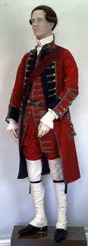 Collections - Uniforms 1760-65 Uniform of Captain Thomas Plumbe of the Royal Lancashire Militia. The 1760-65 uniform of the 1st Royal Lancashire Militia as worn by Captain Thomas Plumbe. The oldest, most complete, British army uniform in the world, similar to the pattern worn at the Battle of Culloden in 1746 and in the Wars of American Independence.