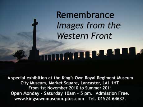 Remembrance - Images from the Western Front An exhibition of photographs of the cemeteries of the Western Front in France and Belgium by David Shackleton. On display in the King's Own Royal Regiment Museum from 1st November 2010 to Summer 2011.
