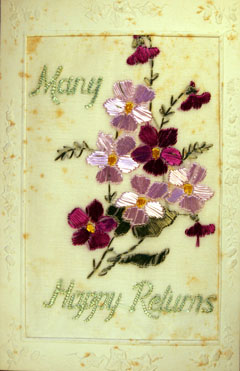 "Many Happy Returns" sent to Miss Nellie Hutton (his future wife),