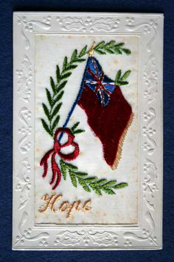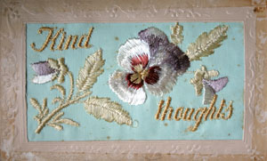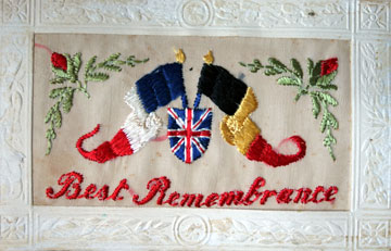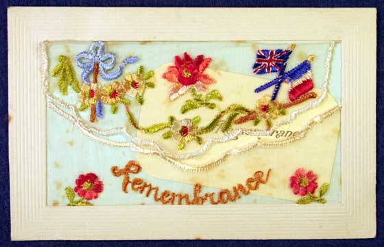 Embroidered silk postcard, 'Remembrance' First World War.