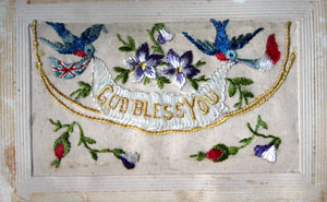 Embroidered silk postcard, '1917 Souvenir from France' First World War.