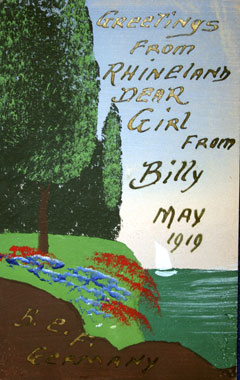 "Greetings from Rhineland Dear Girl from Billy, May 1919"