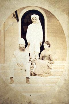 Unknown soldier, wife and native servant. Poona, India, circa 1881/82.