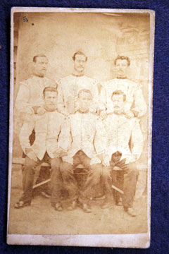 Six bandsmen of the King’s Own, probably 2nd Battalion. Wearing white