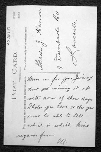 Army Service Corps, with a postcard addressed to Master Kernon of