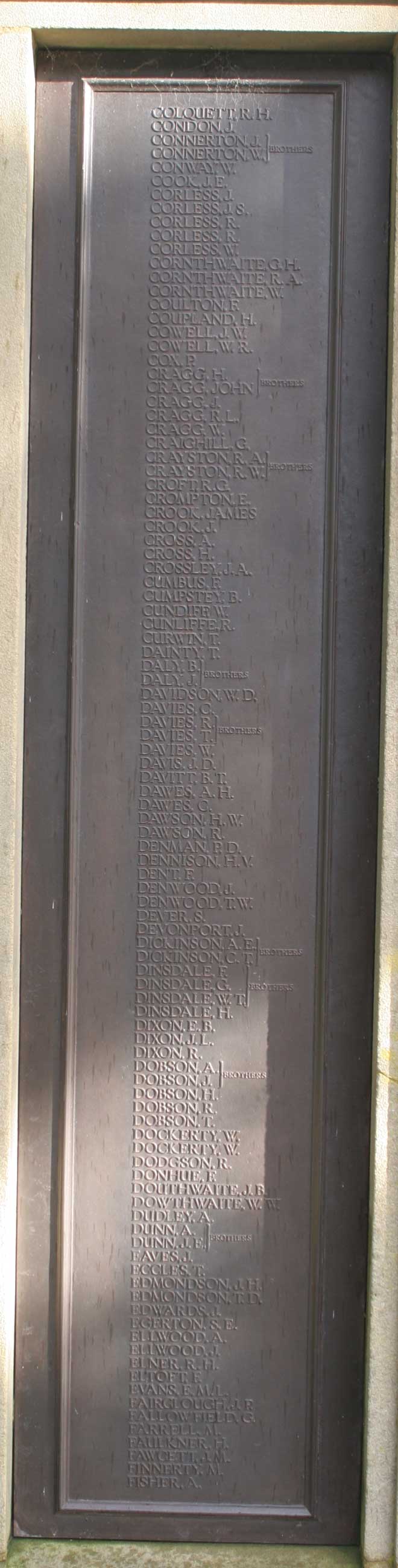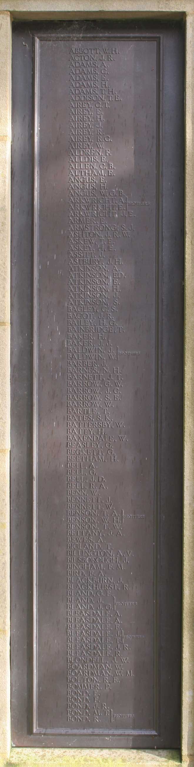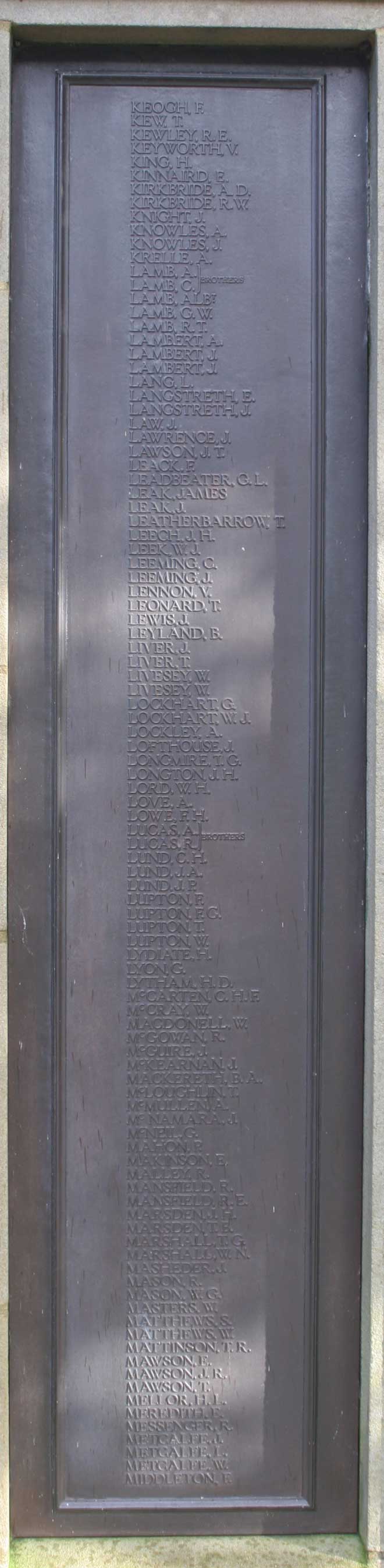 Photo Gallery War Memorials - Lancaster, Lancashire Lancaster's War Memorial was dedicated on 3rd December 1924. The order of service details the ceremony and lists the names on the memorial recording those who fell in the First World War. The memorial was expanded after the end of the Second World War and has also two names added for the Korean War. The War Memorial, 1924
