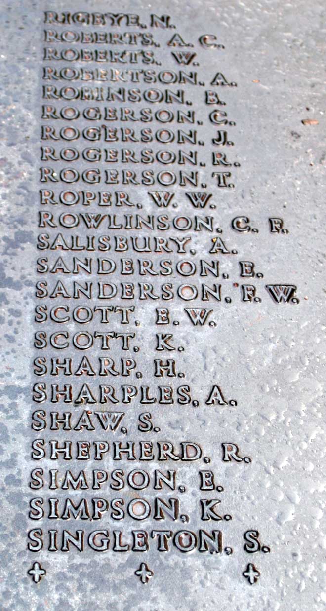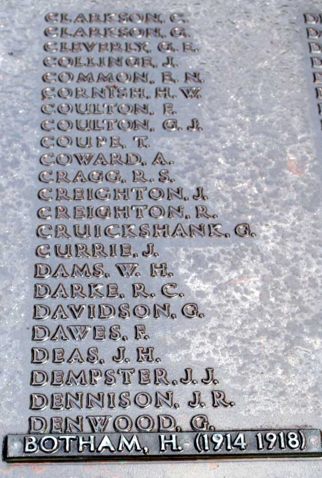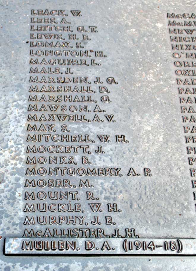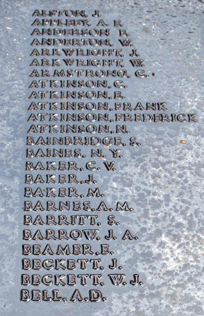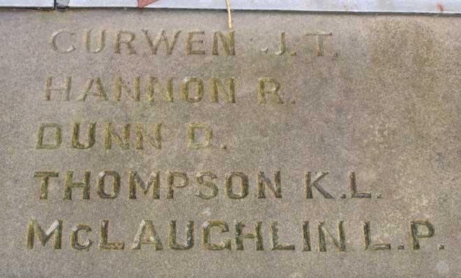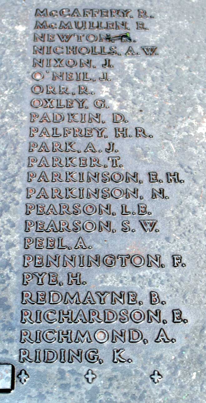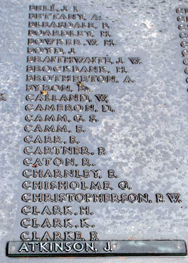 Most recently added names in the stone work plinth of the Second World War Memorial.