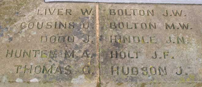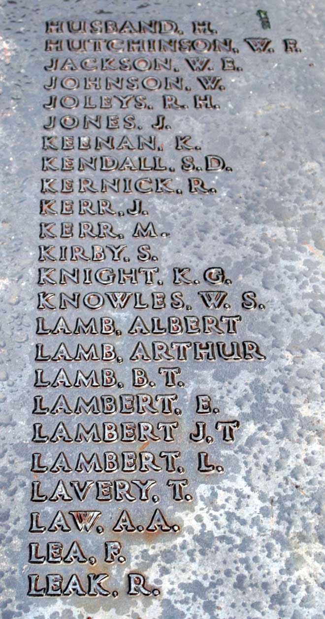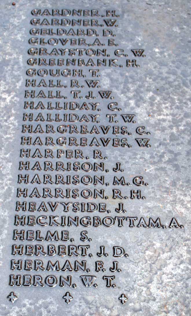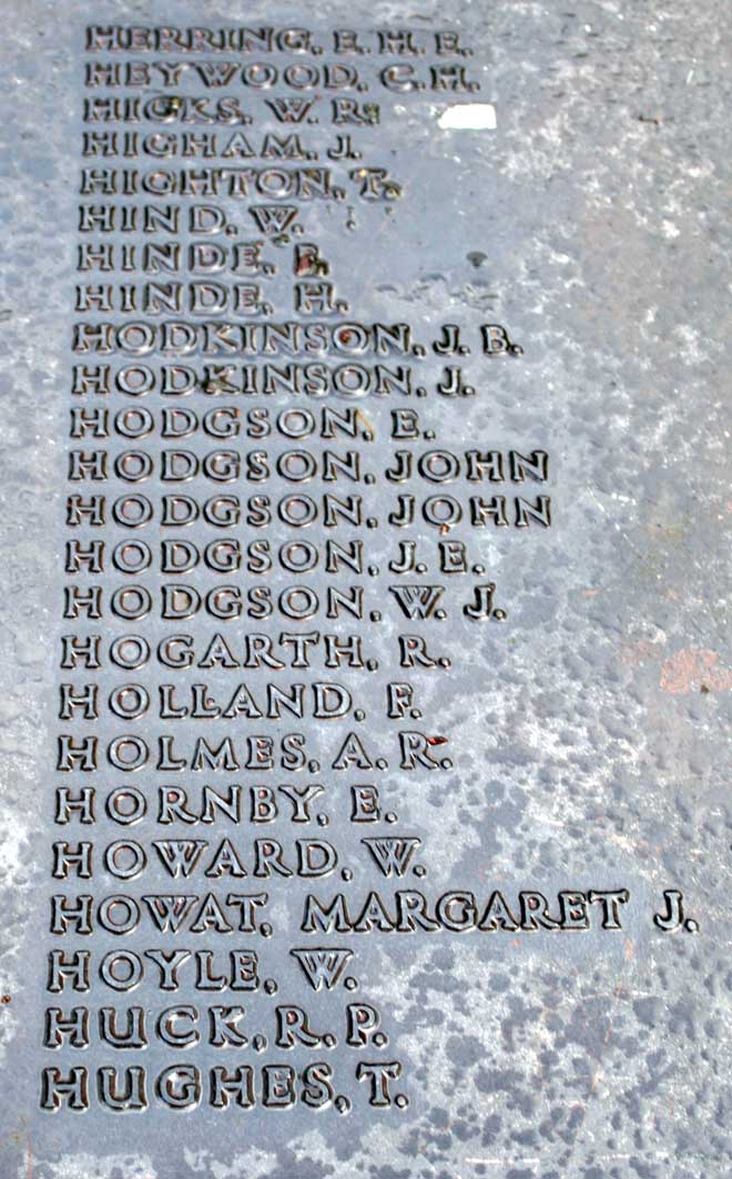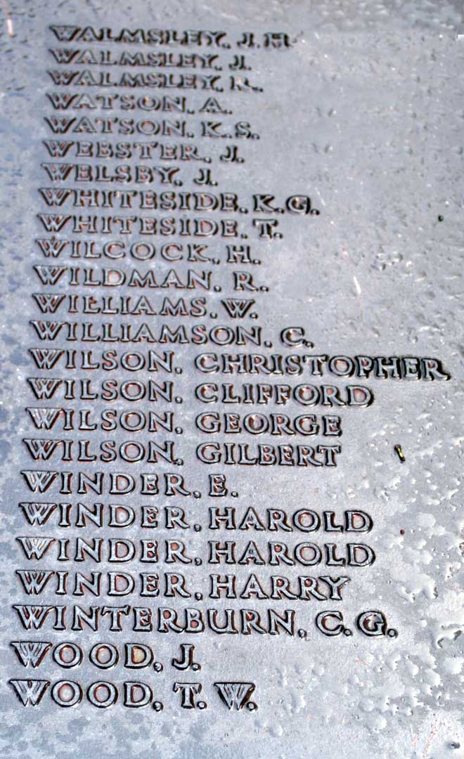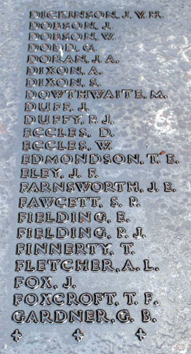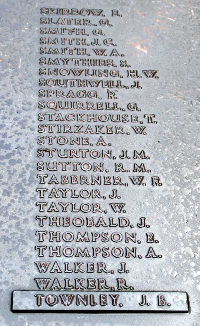 Most recently added names in the stone work plinth of the Second World War Memorial.
