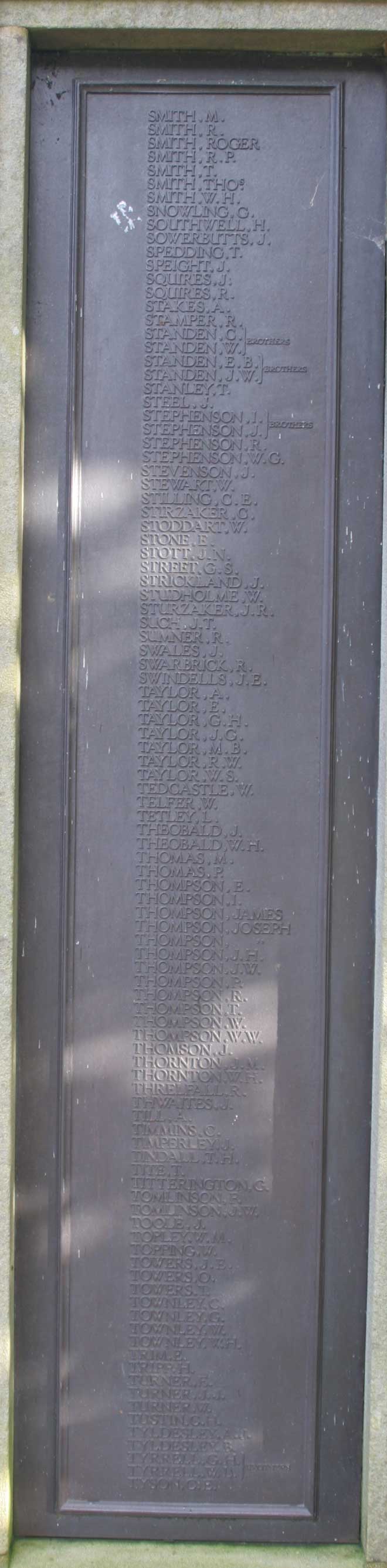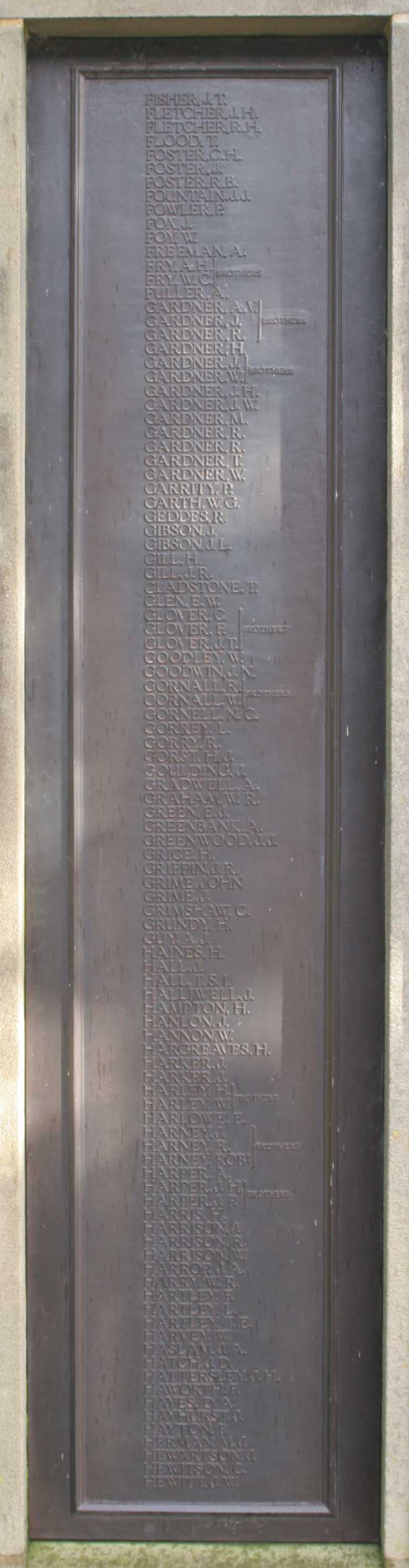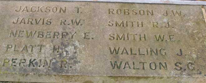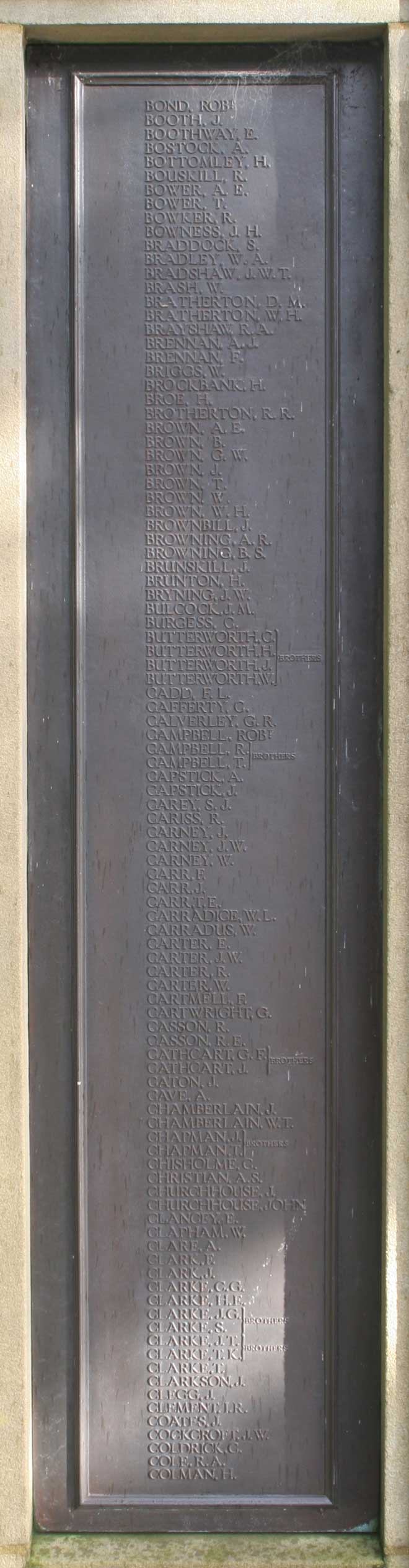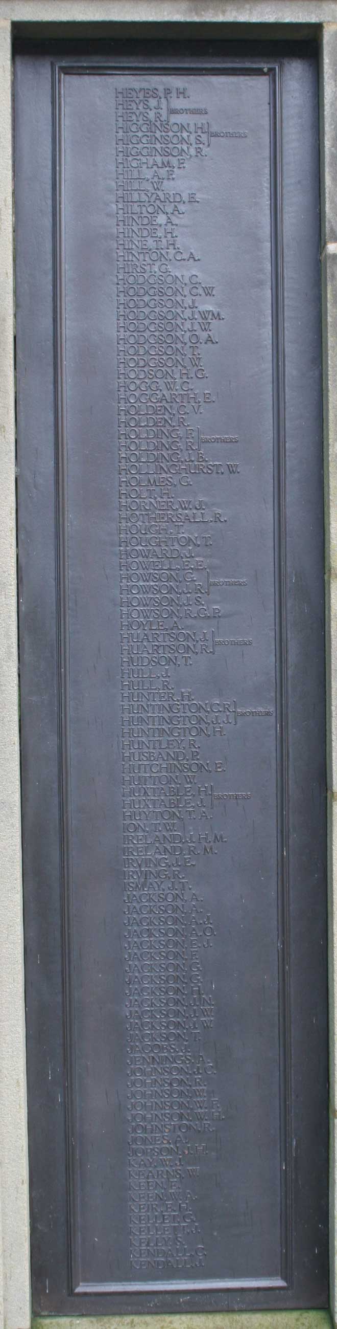 Most recently added names in the stone work plinth of the Second World War Memorial.