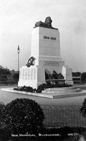 Photo Gallery War Memorials - Morecambe, Lancashire During the First World War the Borough of Morecambe was separate from Lancaster, and indeed Heysham which did not join with Morecambe until 1923) and they commemorated the fallen of the First World War with the erection of a permanent memorial which still stands today. The Borough also produced a book which listed both the fallen and those who served. Prior to the erection of the permanent memorial and temporary memorial was situation on the front.